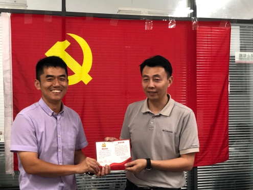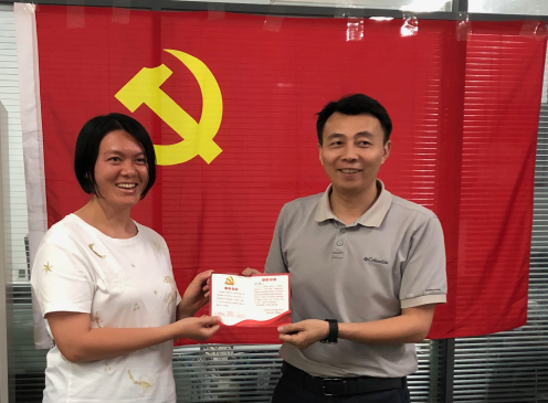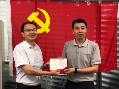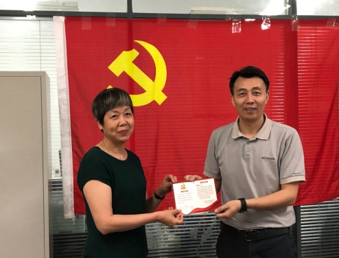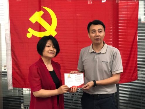 “今天是您的政治生日,向您致以节日的问候!希望您时刻牢记自己是一名共产党员,注重党性修养、增强党员意识,不负党的重任,践行入党誓词,不忘初心、继续前进!”活动中,支部书记郑利平为党员干部送去党员政治生日贺卡。