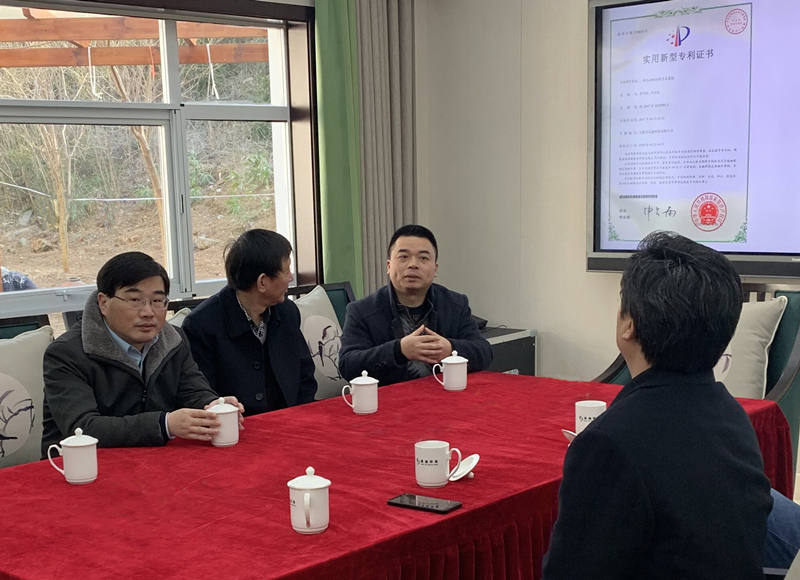 姚华彦(右一)向土木学院、裕安区领导汇报挂职工作情况。